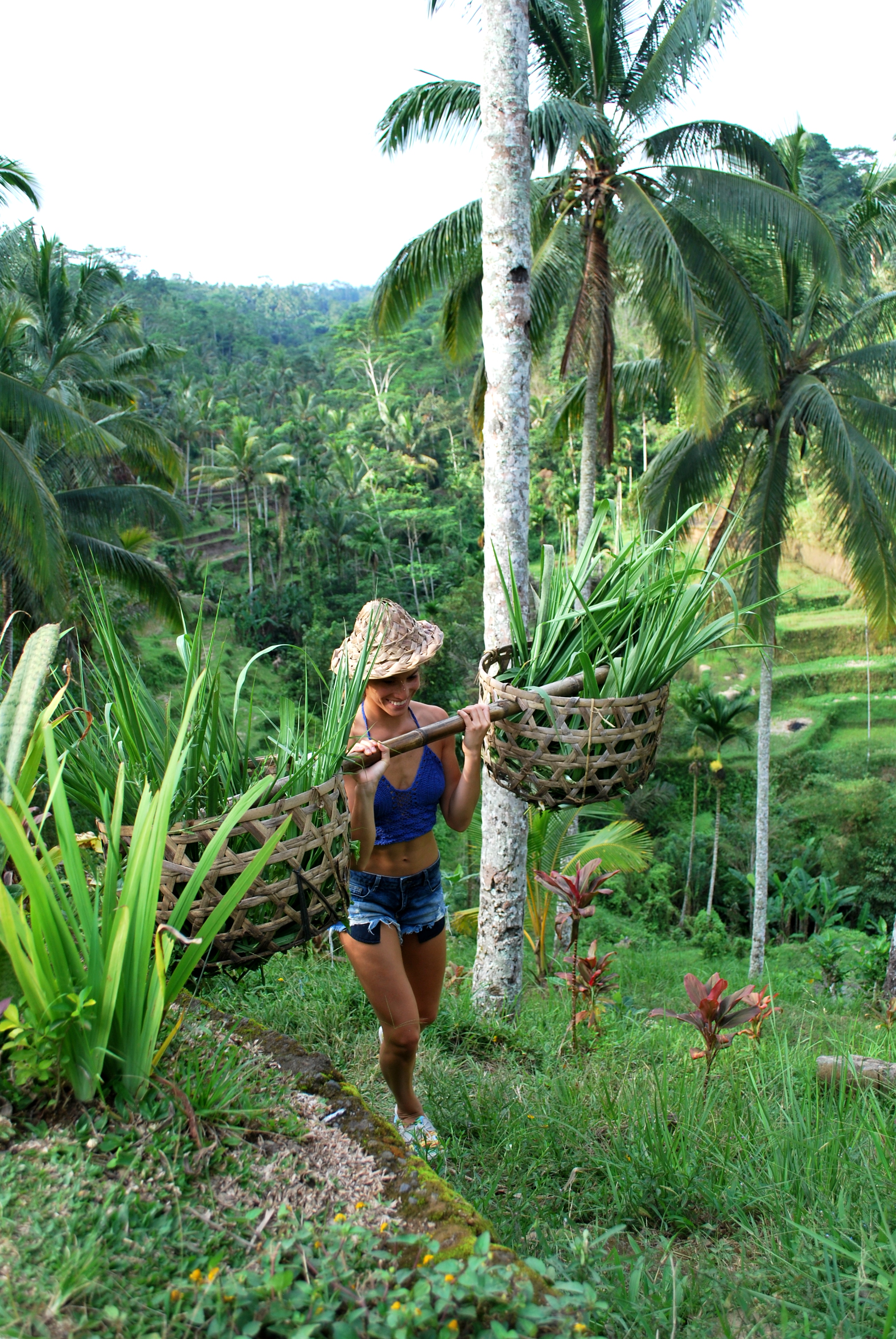Except from the rice terraces the mountains where full of palm trees, I met a sixty year old woman caring thirty kilos of coconuts on her head.